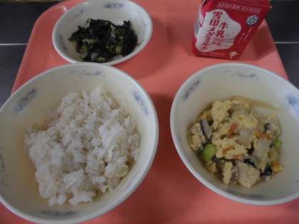 子供たちから,「『高野どうふの卵とじ』は,色どりがよくて,高野どうふに味がしみこんでいて,卵がふわふわで,とってもおいしかったです。」と,感想をくれました。