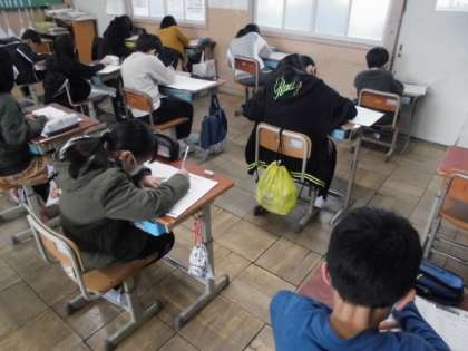 4年生はプレジョイントプログラムがあります。今日は算数に取り組みました。これまでに学習した内容を思い出しながら問題を解いていました。計算問題では,空いているところに途中の計算も書いて間違えないように気を付けていました。