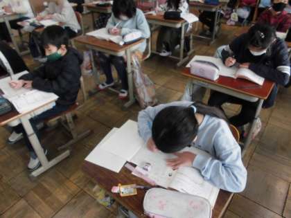 算数の時間には3つの表から分かることを考えました。教科書には,ケガについて調べた表が3種類載っていました。1つ目は学年とけが,2つ目は学年と場所,3つ目は場所とけがでした。それぞれの表から分かることを読み取り,ノートに書き出していました。