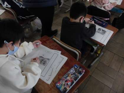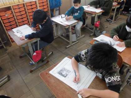 国語では,挿絵をもとにしてどんな場面なのか想像したことをメモしてきました。今日は,メモをもとに誰が・いつ・どこで・何をしたのか分かるような文を書いてお話を作りました。書いているうちに次々とアイデアが湧いてきてまとめるのに苦労していました。