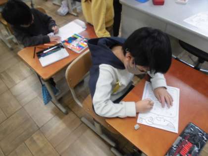 入学してからいろんなことを経験してきた1年生。給食や掃除もみんなで分担して当番活動ができるようになりました。音楽では鍵盤ハーモニカを使ったり体育では大きなプールにも入ったりしました。休み時間には広い運動場で元気いっぱい遊んでいます。そんな楽しい学校生活を新入生にお知らせするためにお手紙を書きました。喜んでもらえるようにきれいに色もぬりました。
