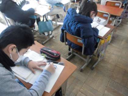 今日の算数では,帯グラフや円グラフの書き方を学習しました。全体をもとにした割合を求めてから目盛りを数えて区切っていきます。割合を求めるために何度もわり算をする必要があります。間違えないように丁寧に計算して求めた結果,ぴったり100になると喜んでいました。