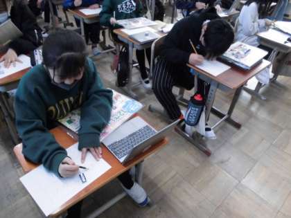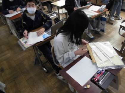 図工では,1枚の板を加工してどんなものを作るか考えました。写真立てや小物入れなど何を作るか決めると,実際に使っている場面を想像しながら工夫を凝らしたアイデアスケッチを描いていました。