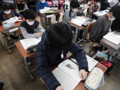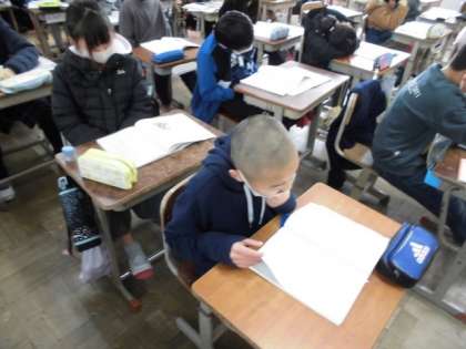 国語の時間には,教科書にある「モチモチの木」というお話の学習が始まりました。今日は,先生が読み聞かせをしてくれました。主人公の豆太が勇気を出す場面をじっくり聞き入っていました。音読も始まるので,自分で読みながらお話を味わってほしいです。