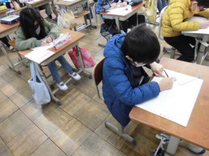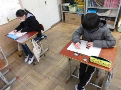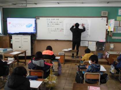 今日の算数では,教科書にある直方体の展開図を工作用紙に書きました。展開図とは,直方体を辺に沿って切り開いた時にできる平面図のことですが,直方体の面がどんな長方形できているか考えました。たてと横の長さに気を付けて書くようにしていました。