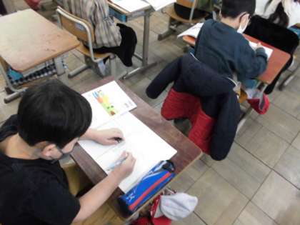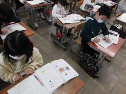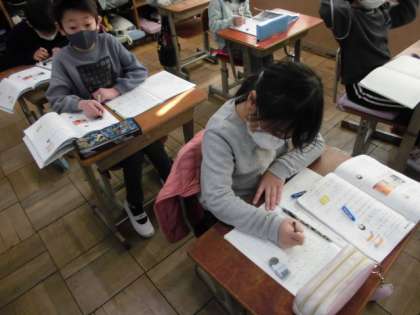 今日の算数では,横の長さが150cmのつくえと40cmのつくえを合わせると何cmになるか計算のやり方を学習しました。これまで合わせる時には「たし算」を使ってきたのですが,どう足せばいいのか考えました。また,100cmは1mになるので,答える時には,mとcmを使って答えていました。