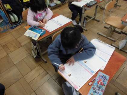 今日の道徳では,「安全なくらし」について考えました。人気のある遊び道具を使いたいから少し急いでしまったためにろう下でぶつかってしまいました。どうすればよかったのか意見を出し合った後,これからの学校生活で安全委過ごすために気を付けたいことをノートに書いていました。みんなが安全に過ごすことはとても大切なことなので,「ろう下を歩く」などみんなで心がけていってほしいです。