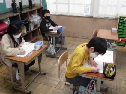 国語の時間には,物語を読んでどんな印象をもったのか意見を出し合いました。「こわい」と感じた子もいれば「楽しそう」と感じた子もいて,人それぞれに感じ方には違いがあることが分かりました。言葉や表現に着目して,もう少し読み深めていこうと思います。