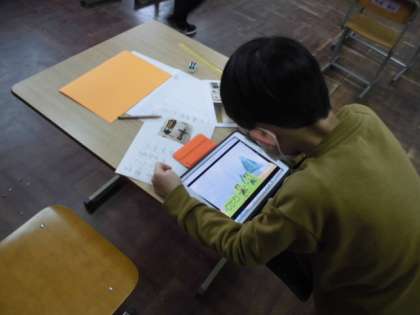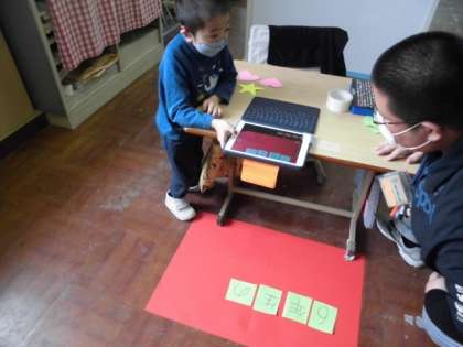 現在,6年生を送る会で流すコマ送り動画を作っています。自分の伝えたいメッセージに必要なパーツができた人から撮影に入りました。少し進めては撮影するという地道な作業の繰り返しですが,出来上がった動画をチェックすると嬉しそうにしていました。