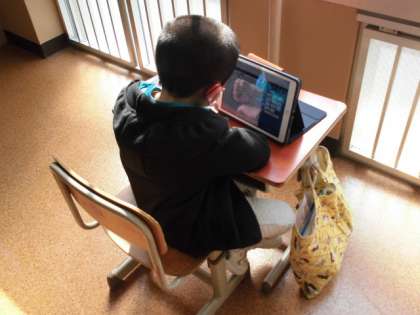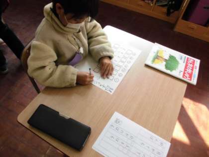 国語の時間には,学習ノートやプリントを使って文字の練習をしました。できた人はタブレットを使って,いろんな問題に挑戦していました。
