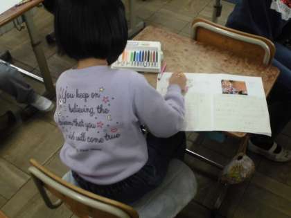 生活科の時間には,これまでの自分の成長を振り返っています。小さい頃の様子が分かる写真も貼りながら,自分がどのように成長してきたのか文章でまとめてきました。生まれた頃の様子も少し照れくさそうに見せてくれました。自分の成長には,いろんな人が関わっていることを知り,これからも人との関わりを大切にしていってほしいです。