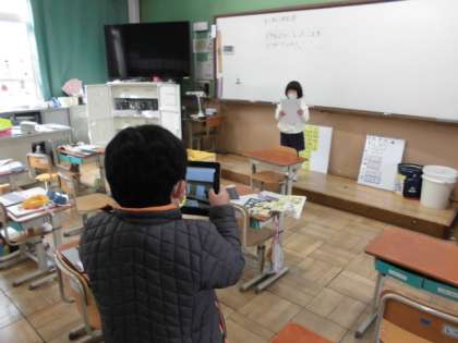 今日の生活科では,できるようになったことを動画で撮ることになりました。フラフープができるようになった人は,タブレットを立てかけて撮影しようと思ったのですが,スタートのボタンを押せません。そこで,通りかかった先生に頼んでボタンを押してもらいました。ほかにも水やりや日直の仕事など,いろんな場面を撮影していました。