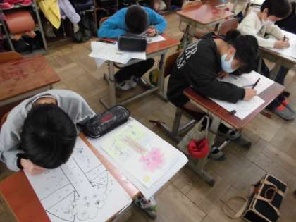 ありすの小径のライトアップに飾る「とうろうの絵」ができてきました。京都らしい建物や風景を選んで下絵を描けたら,ネームペンでなぞりました。その後,絵の具で色を塗っていきました。だんだん出来上がってきているので,飾られる日が楽しみです。