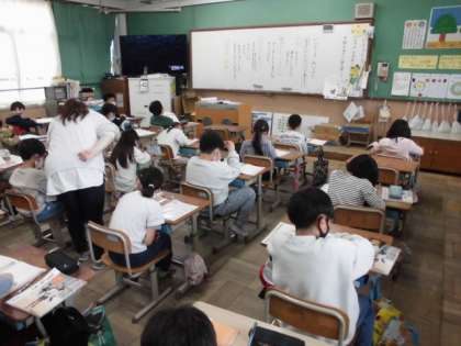 道徳の時間には,自分のいいところについて考えました。お話に出てくる主人公が困っている1年生を助けた場面から,運動や勉強ができることもいいけど,人に優しくできることも大切だと気付いていました。