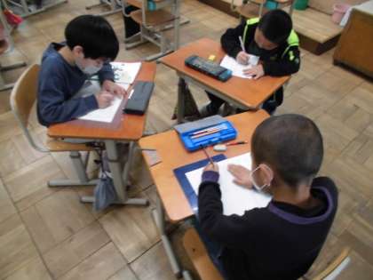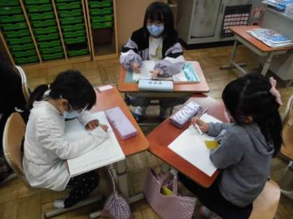 国語の時間には,今年学習したカタカナを使った言葉を探してノートに書いていきました。ステーキやトマト,ランドセルなど身の回りには,カタカナで表す言葉がたくさんあります。しかし,急に言われてもすぐには思い出せません。周りを見たりいろんなことを思い出したりしながら,たくさん書いていました。