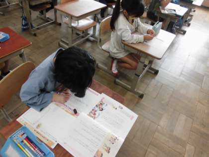 今日の道徳では,得意なことと苦手なことについて考えました。人それぞれに苦手な食べ物があったり得意なスポーツがあったりします。でも,自分に自信が持てていない時に周りから褒められると嬉しくなるのはみんな同じです。それによって自信がついたりやる気が出たりすることに気づいていました。