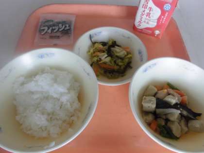 「『高野どうふと野菜のたき合わせ』は,お肉と野菜がやわらかくて,高野どうふにも味がしみ込んでいて,おいしかったです。『ごま酢煮』は,キャベツがシャキシャキしていて,おいしかったです。」と,感想をくれました。