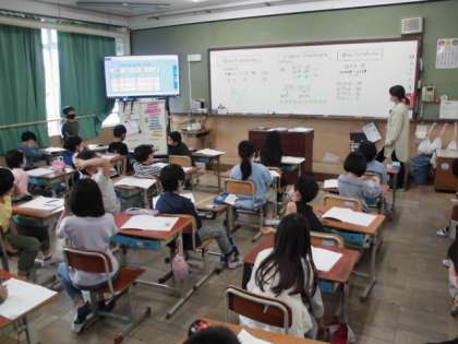 2年生の算数では,九九の学習をしました。9×9までのかけ算は,何度も繰り返し唱えて覚えました。今日は,×10が出てきました。どうすれば答えが分かるかかけ算の仕組みをもとに考えるようにしました。