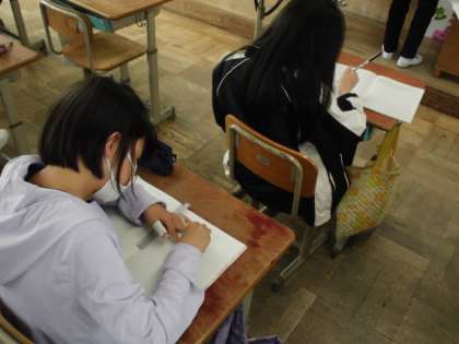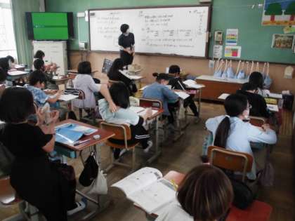 マラソンで走る距離は,42.195kmです。この数字を10倍,100倍すると,どんな数になるのか考えました。同じ数を10個集めると「0」が一つ増えることから,小数点が移動することが分かりました。その後の練習問題では,同じ要領で100倍,1000倍するとどんな数字になるのか,小数点の移動から考えていました。