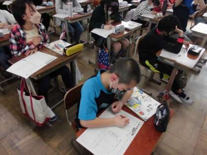 家庭科では,食事や衣服などに関する仕事はどんなものがあるのか思い出して発表しました。料理を作ることやお皿を洗うこと,洗濯することなどたくさん出てきました。自分のおうちでもいろんな仕事があることに気づいていました。