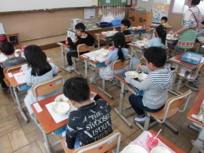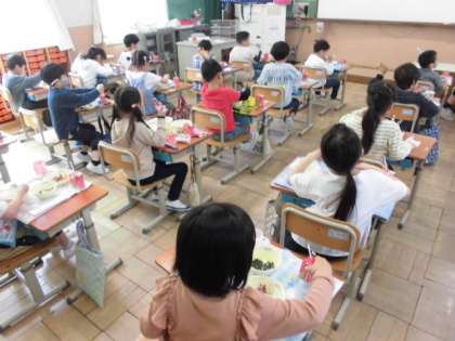 毎日,いろんな給食が出てくるので,「今日はどんな給食かな?」と楽しみにしてくれている1年生。給食の時間になると,手洗いをしたりナフキンを敷いたりと自分で準備をしています。お友達との会話を楽しみたいところですが,今は学校でも黙食です。1年生も静かに給食を食べてくれました。