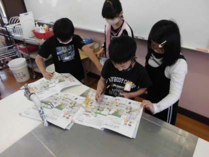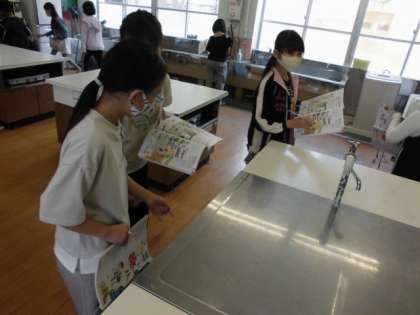5年生から新しい教科「家庭科」の学習が始まります。料理や洗濯,掃除といった自分たちの生活にかかわることも多く学びます。今日は,学校の家庭室に行って,どんなものがどこにあるのか探索してみました。教科書に載っているものが見つかると喜んでいました。
