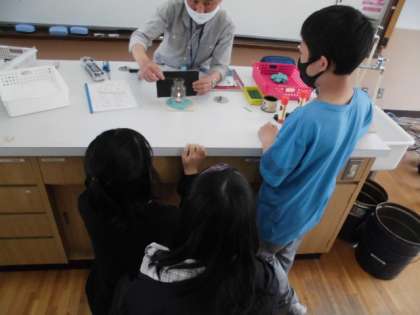 びんのふたをすると,中で燃えているろうそくの火が消えてしまうことが分かりました。では,どうすればろうそくの火を燃え続けさせることができるのか調べました。びんの底も空いているとよく燃えることから,ろうそくの周りには新鮮な空気が必要だと分かりました。振り返りでは,もう少し詳しく調べたいという意見がありました。