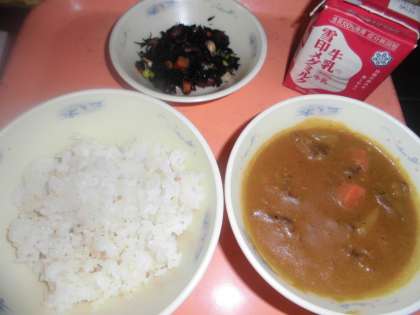 給食室で作ったカレールーを味わって食べました。