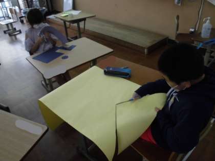 4月も下旬に差し掛かり,もうすぐゴールデンウィークが始まります。子どもの日も近づいてきていることもあって,今日は,みんなでジャンボこいのぼりを作りました。目やしっぽの担当を決めて,模造紙や色画用紙を切っていきました。どんなこいのぼりができるか楽しみです。