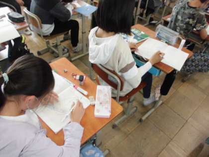 算数では「対称な図形」について学習しています。今日は,点対称な図形の描き方を学習しました。点対称の性質をおさえてから,条件に合うように対応する点や辺を見つけます。対応する点同士を結ぶと中心を通ることや中心までの長さが等しいことを生かして描いていました。