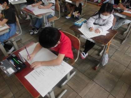 国語の時間には,お話がどんな順序で書かれているか考えました。挿絵と照らし合わしながら段落ごとに分けられた文章を見ていると,書き出しの部分がヒントになっていることに気づいてました。