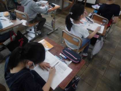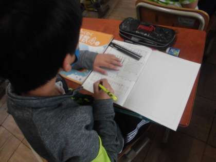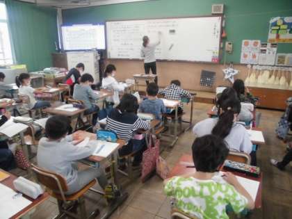算数では,折れ線グラフについて学習しています。今日は,気温が変わっていく様子を表したグラフをもとに,縦軸と横軸の1めもりが何を表しているのか考えました。