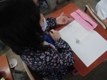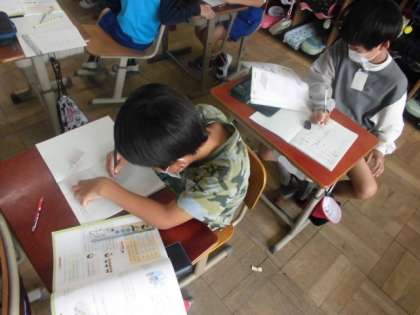 算数では,わり算の学習を進めてきました。今日は,これまで学習したことを生かして練習問題に取り組みました。「16÷4」「35÷7」などの問題に九九を思い出しながら答えていました。