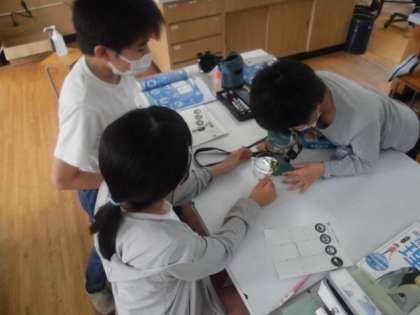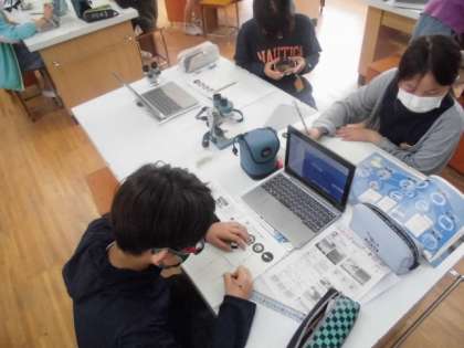 メダカにはオスとメスがいて,ひれの形に特徴があるようです。今日は,メダカの卵ができる様子などを学習しました。メスだけでは卵ができないので,オスとメスを同じ水槽に入れる必要があります。卵の色や大きさなど観察した後,実際に顕微鏡で探してみました。