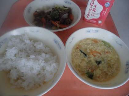 「『焼肉』は,とってもおいしくて,おかわりもして,いっぱい食べました。『中華コーンスープ』は,コーンの味がして,とってもおいしかったです。」と,感想をくれました。