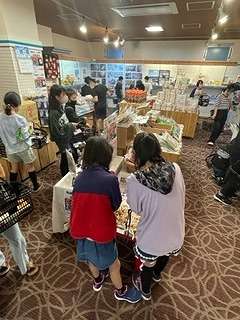 大塚国際美術館でたくさんの名画を鑑賞した後,淡路島にわたり,宿舎に到着した6年生。クラスごとに交代でお買い物タイムです。お土産を買う人の顔を思い浮かべながら,予算内で買えるように計算しながら買い物をしています。