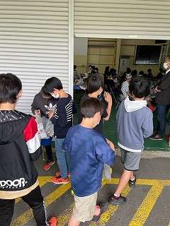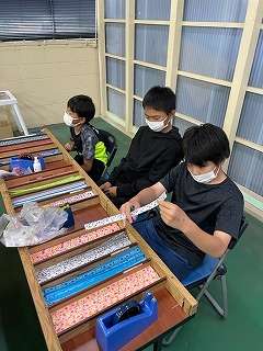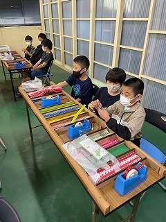震災記念公園で多くの事を学びました。6年生はバスで近くの吹き戻しの里に移動し,これから吹き戻しを作ります。作り方の説明を聞いた後,作り始めています。
