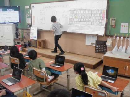 今日は,GIGA端末を使う練習をしました。一人一台あるタブレットですが,どうやって使うか分かりません。まずは,電源を入れて立ち上げてみました。しかし,画面が進んでくれません。タブレットにはカギがかかっていて,解除するための番号があることを知りました。順番に入力していくと,ようやく画面が切り替わりました。