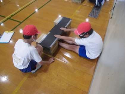 今日の午後から新体力テストをしました。反復横跳びやソフトボール投げ,長座体前屈などいろんな種目に取り組みました。お互いに記録を取ったりして協力してできました。