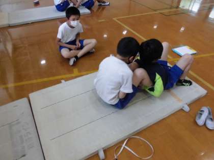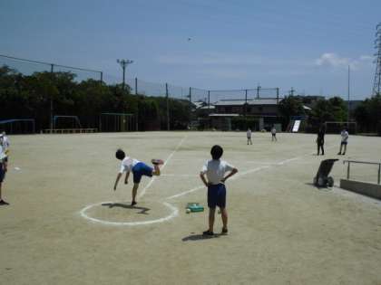 1年生のお手伝いが終わったら,今度は自分たちの番です。上体起こしやソフトボール投げなど小学校生活でどれくらい力が伸びたのか,記録に挑戦していました。昨年より伸びが感じられると喜んでいました。
