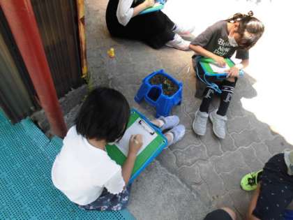 理科の時間には,ホウセンカの観察をしました。前に種をまいたけど,まだ芽が出ていないものもありましたが,種からどのように芽を出すのか,どんな葉の形をしているのか観察することができました。