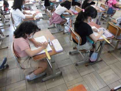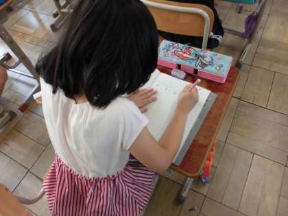 算数の時間には,「長さ」の学習をしています。竹尺をみると,細かい目盛りがたくさん書いてあります。目盛りの数をかぞえてみると,1cmは10mmと分かりました。今日は,さらに8cm5mmが何mmなのか考えました。