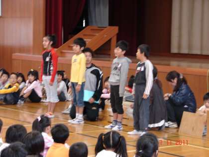 生活科・総合的な学習の発表会で、4・5組は 有栖川でみつけた自然について伝えてくれました。