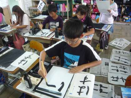 書写の時間には「ひらがなの筆使い」の学習で,「はす」という文字を毛筆で書きました。子どもたちは,「結び」の筆使いに気を付けながらゆっくり丁寧に文字を書き,出来上がったお友達の文字を見て「○○が上手やな〜!」と声をかけ合いお互いに学び合うことが出来ました。