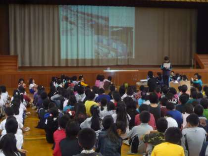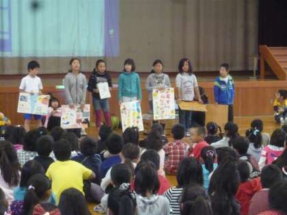 今日は,児童朝会で各学年・4・5組の生活科・総合学習での取り組みを発表し合いました。子どもたちは,大変素晴らしい態度でしっかりとお友達の発表を聞くことができました。また,4年生は7名が代表で発表し全校の子どもたちに有栖川の環境をよりよくするためにどんなことをしてほしいのかを呼びかけることが出来ました。今後も4年生が率先して有栖川の環境をよりよくするための取り組みを行っていきたいと思います。