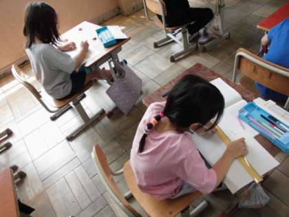 今日の算数では,竹尺を使って直線を書きました。目盛りの読み方や「0」から書き始めることを確認してから,8cmや12cm5mmなどいろんな長さの直線を書きました。自分がどのように書いたのか前に出て説明してくれる子もいました。