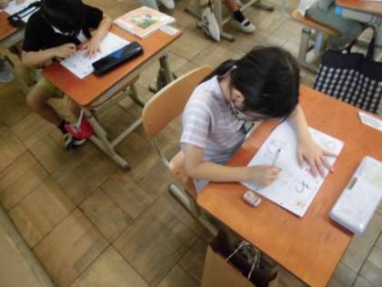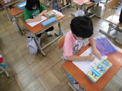 今日,学習する平仮名は「わ」です。交わる部分や曲がる部分を丁寧に書くようにしました。