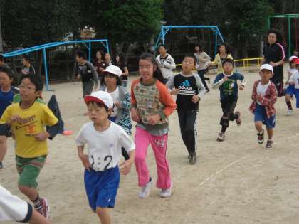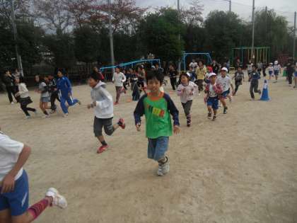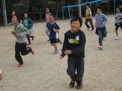 中間マラソンが始まって3日目です。5分間、全校一斉に運動場を走ります。4・5組での朝のかけあしとちがって、全校みんなで走るので波があって走りやすいようです。毎日「今日は○周、走る」と自分の目標をもって走っています。