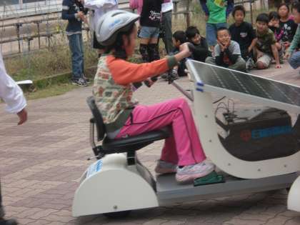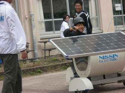 4年生と一緒にソーラーカーについての学習をしました。四条通りにある日新電機の方々に来ていただき、実際にソーラーカーに乗せていただいたり、バッテリーのしくみについて教えていただいたりしました。私たちの生活の様々なところにバッテリーが使われていることも教えていただきました。
