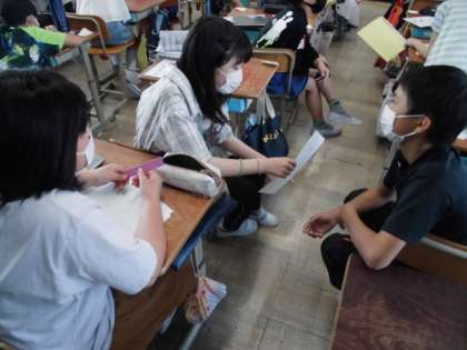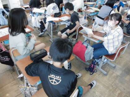 総合的な学習の時間には,資料から京都にやってくる観光客の人数など傾向を読み取りました。その後,自分が読み取ったことをグループで出し合いました。